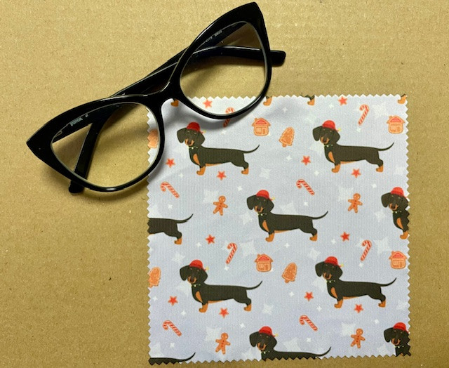 Karácsonyi tacskó mintás szemüveg-törlőkendő